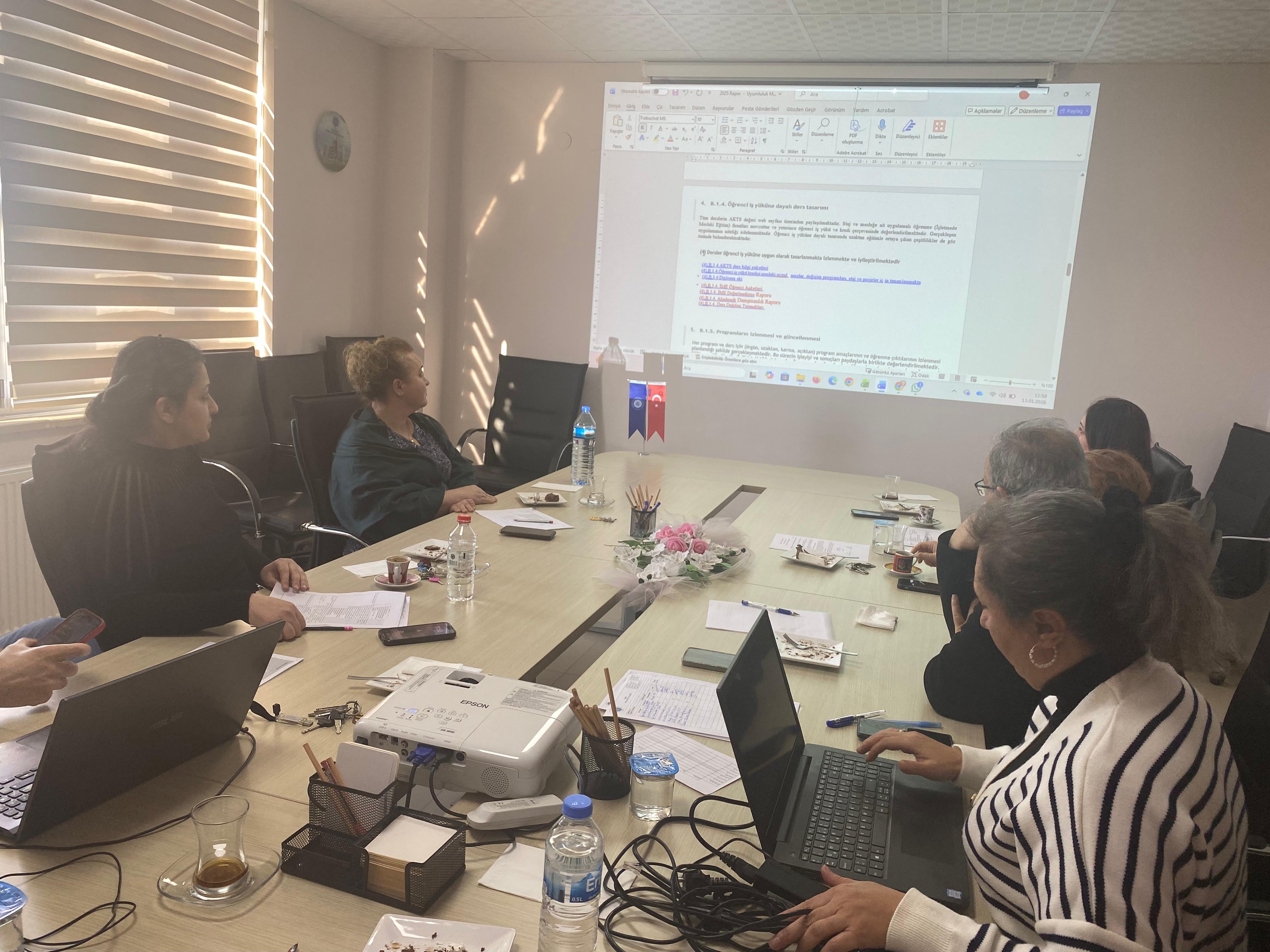 13.01.2026 tarihinde birim kalite elçisi Doç. Dr. Özkan Sarısoy’un koordinatörlüğünde, Birim Kalite Komisyonu ve Kalite Alt Çalışma Grup üyelerinin katılım gösterdiği Birim İç Değerlendirme Raporu hazırlık toplantısı gerçekleştirilmiştir.