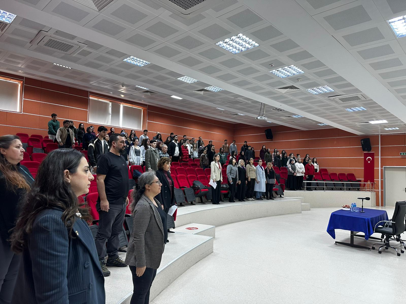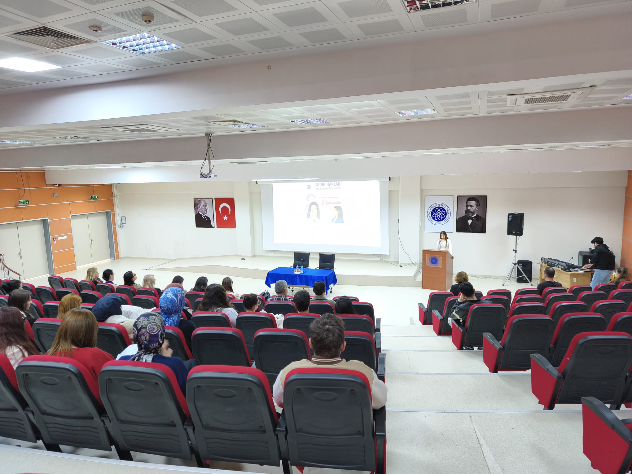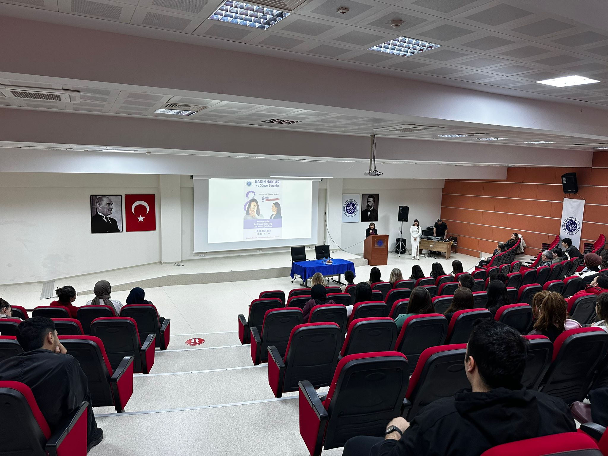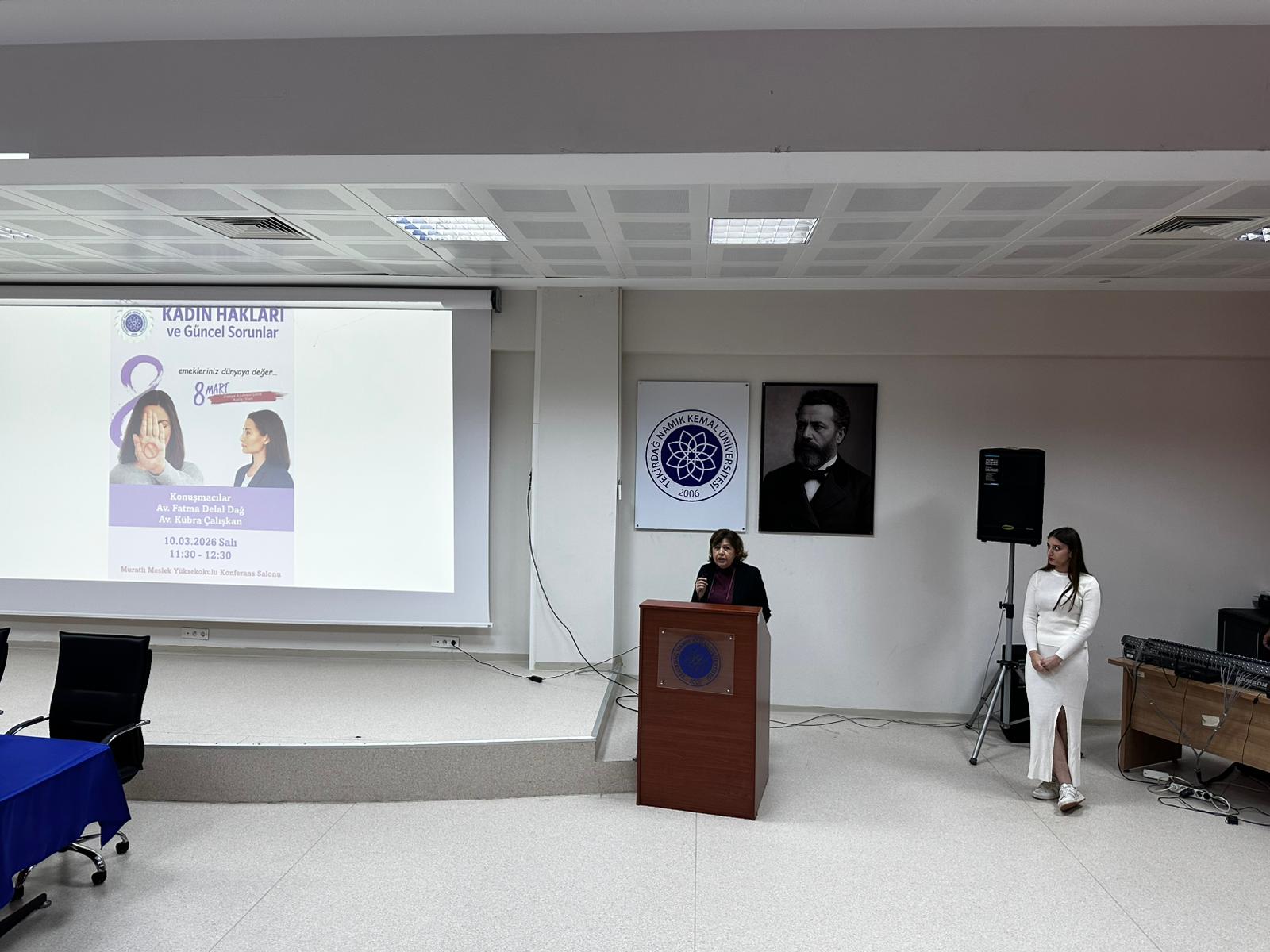 8 Mart Dünya Kadınlar Günü kapsamında “Kadın Hakları ve Güncel Sorunlar” konulu konferans 10.03.2026 tarihinde gerçekleştirilmiştir. Açılış konuşması kapsamında Yüksekokul Müdürümüz Doç. Dr. İlknur Ergün; kadınların sosyal, siyasi ve ekonomik alanlarda daha fazla mücadele etmek zorunda olduğunu vurgulayarak hayatın her alanında eşit ve adil bir şekilde kadınların da söz sahibi olması gerektiğini ifade etmiştir. Sayın Ergün; kadınların kendi haklarının farkında olması ve karşı karşıya kalınan sorunlarda hukuki süreçler konusunda bilgi sahibi olunması açısından bu konferansın katılımcılara faydalı olacağı temennisi ile sözlerine son vermiştir.